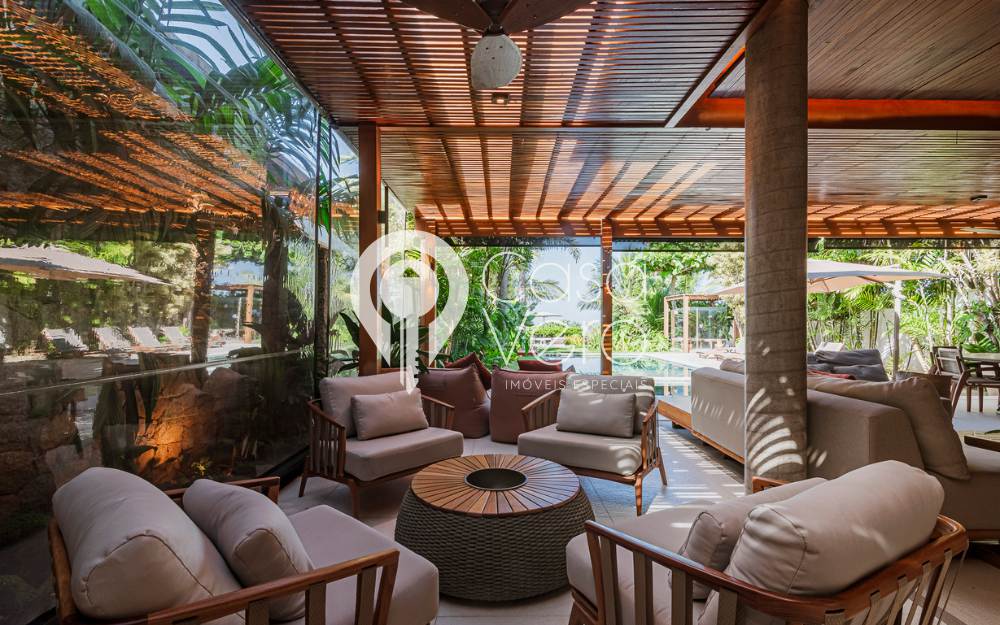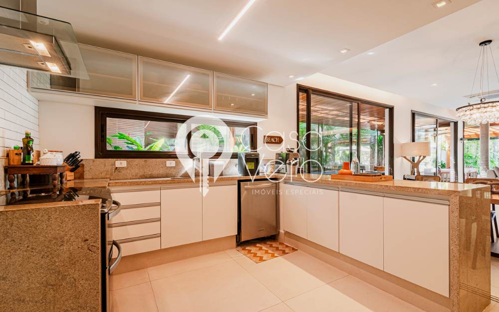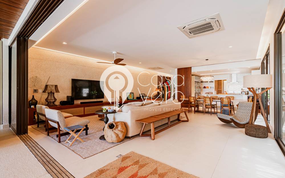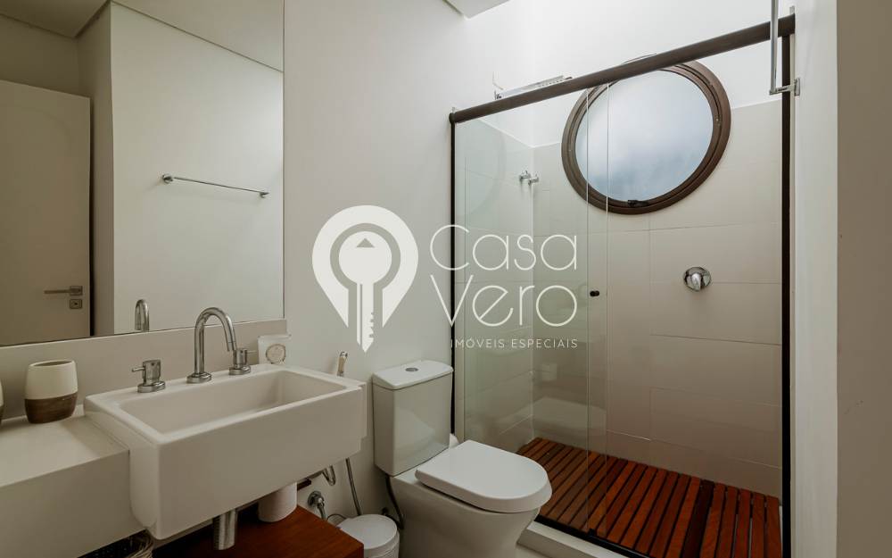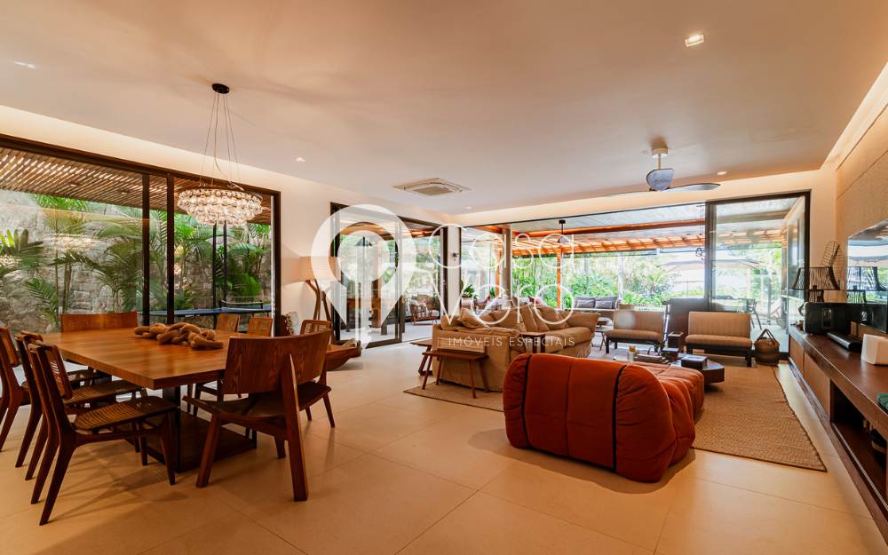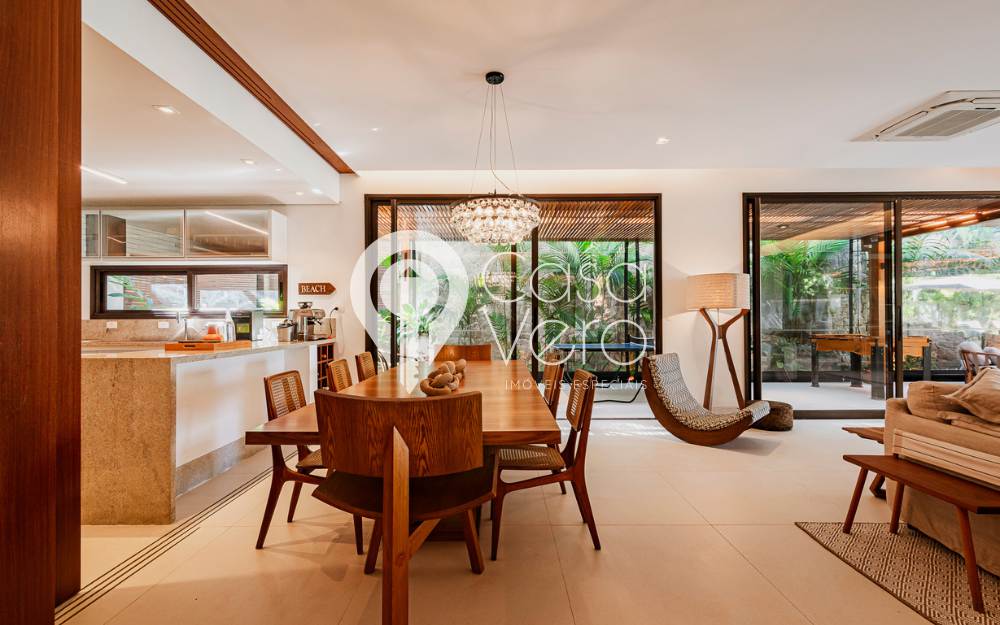Para o lazer, além da praia que é a estrela local e o serviço oferecido pelo condomínio para comodidade, a casa oferece área gourmet com churrasqueira e piscina, ambas privativas, sauna e hidromassagem.