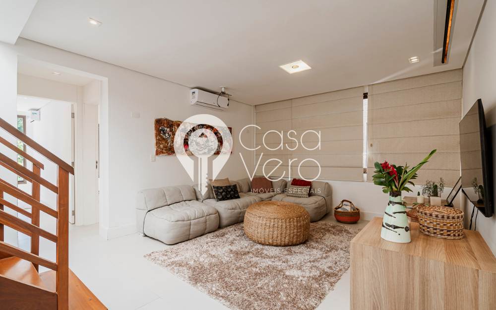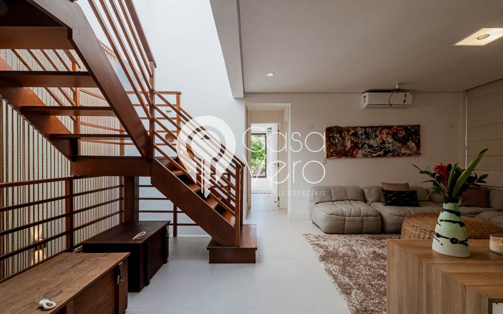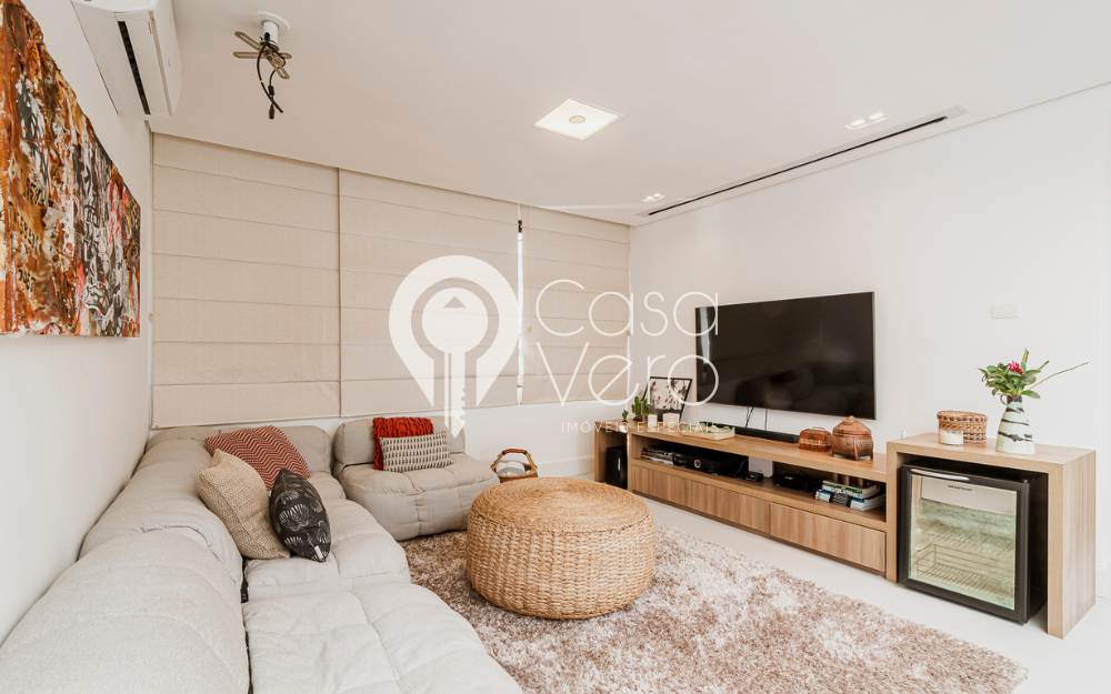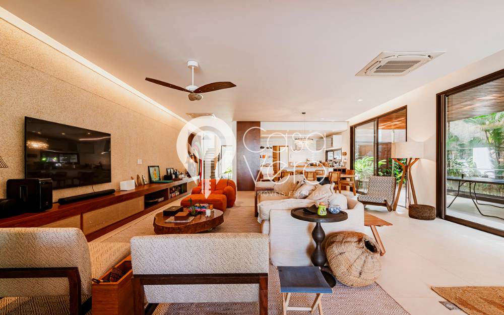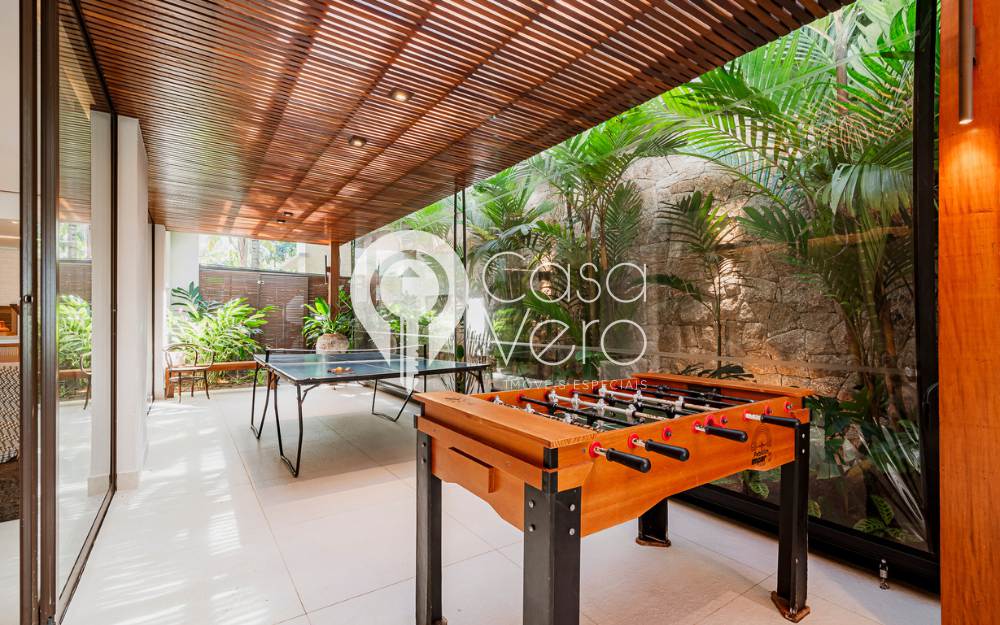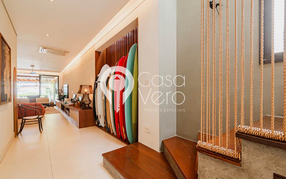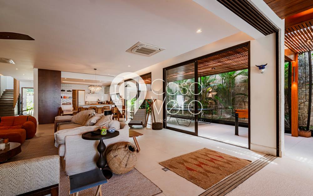 Para o lazer, além da praia que é a estrela local e o serviço oferecido pelo condomínio para comodidade, a casa oferece área gourmet com churrasqueira e piscina, ambas privativas, sauna e hidromassagem.