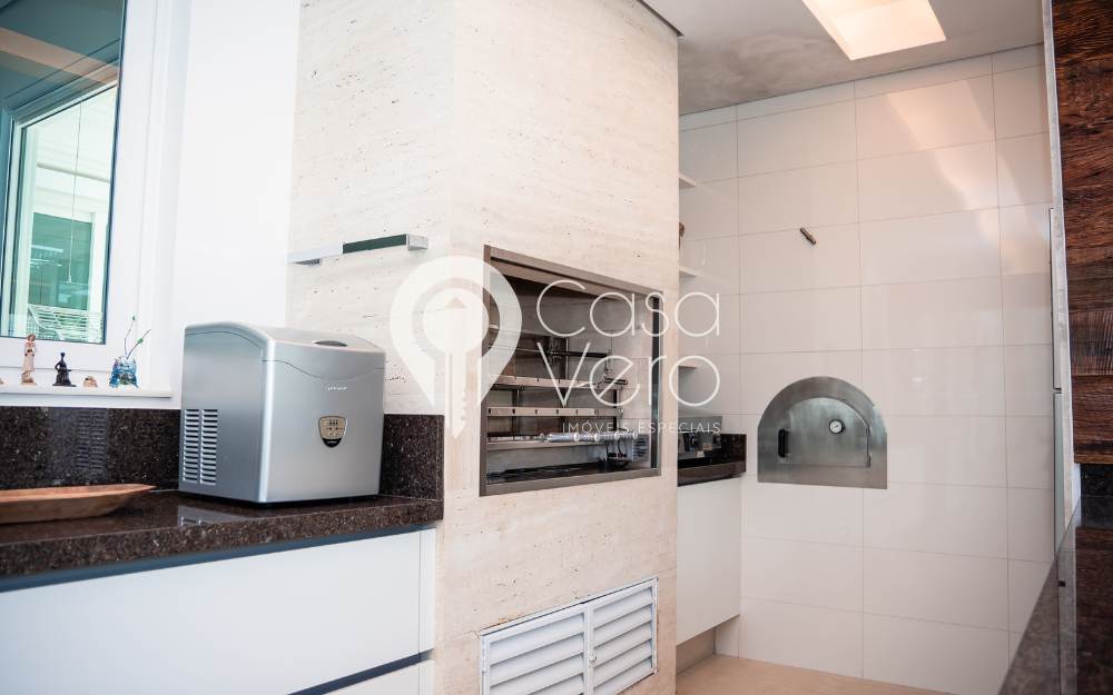 A área gourmet é composta por churrasqueira e forno de pizza, totalmente equipada.