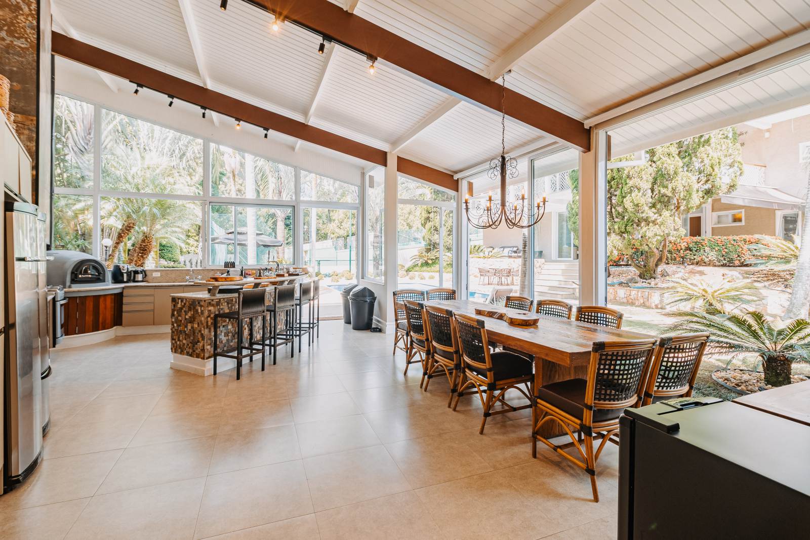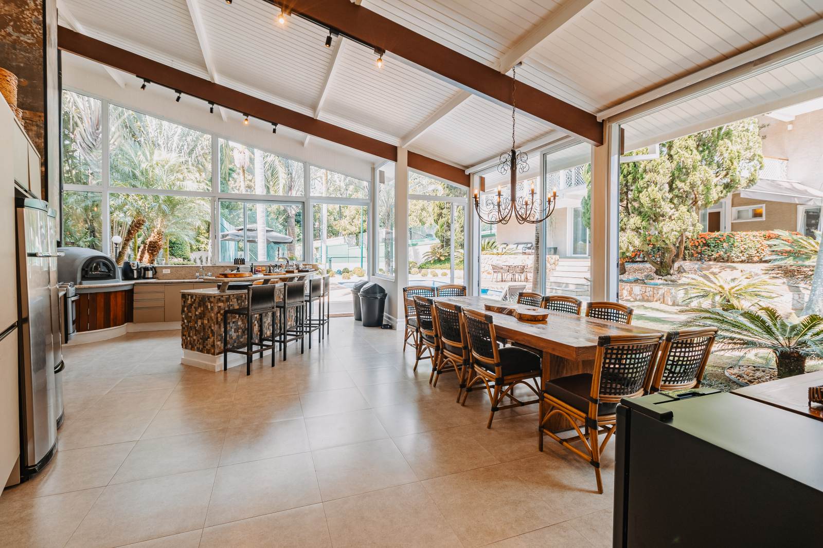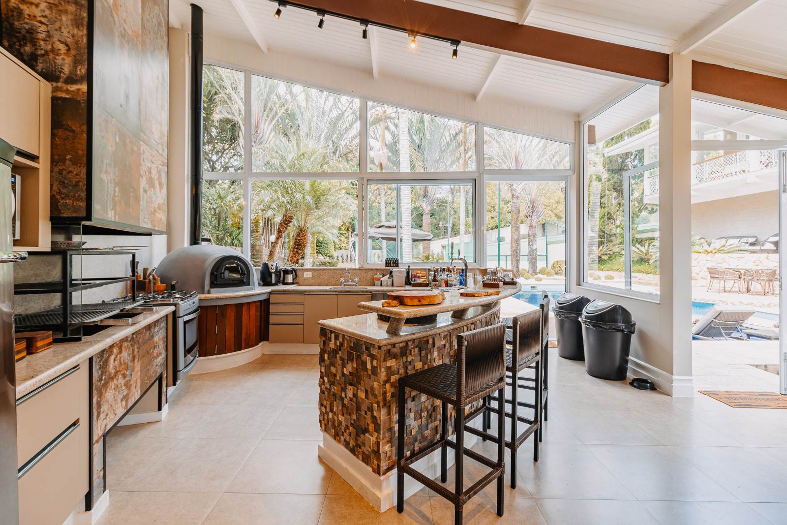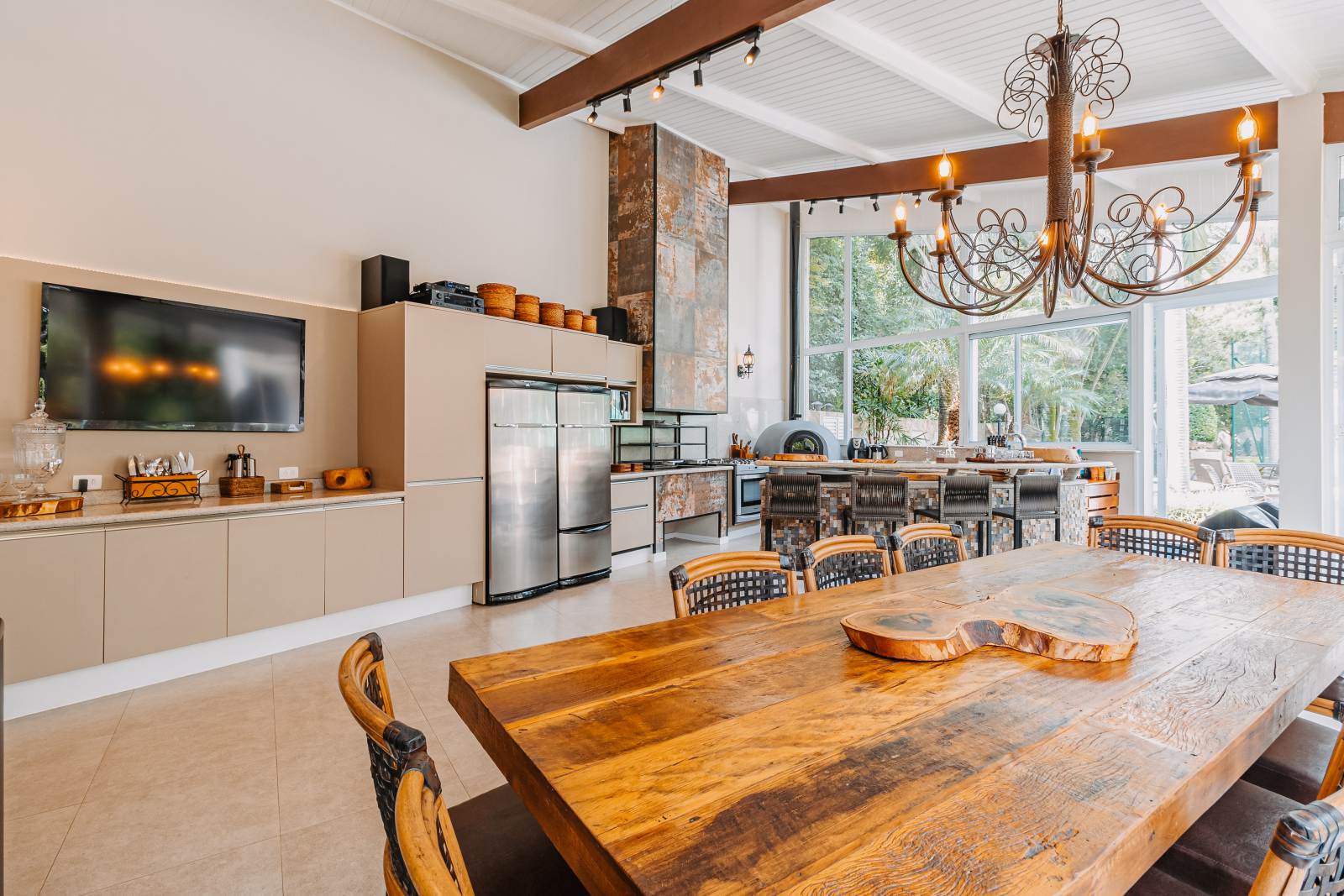 * Área gourmet equipada com TV, eletrodomésticos e sistema de som automatizado
