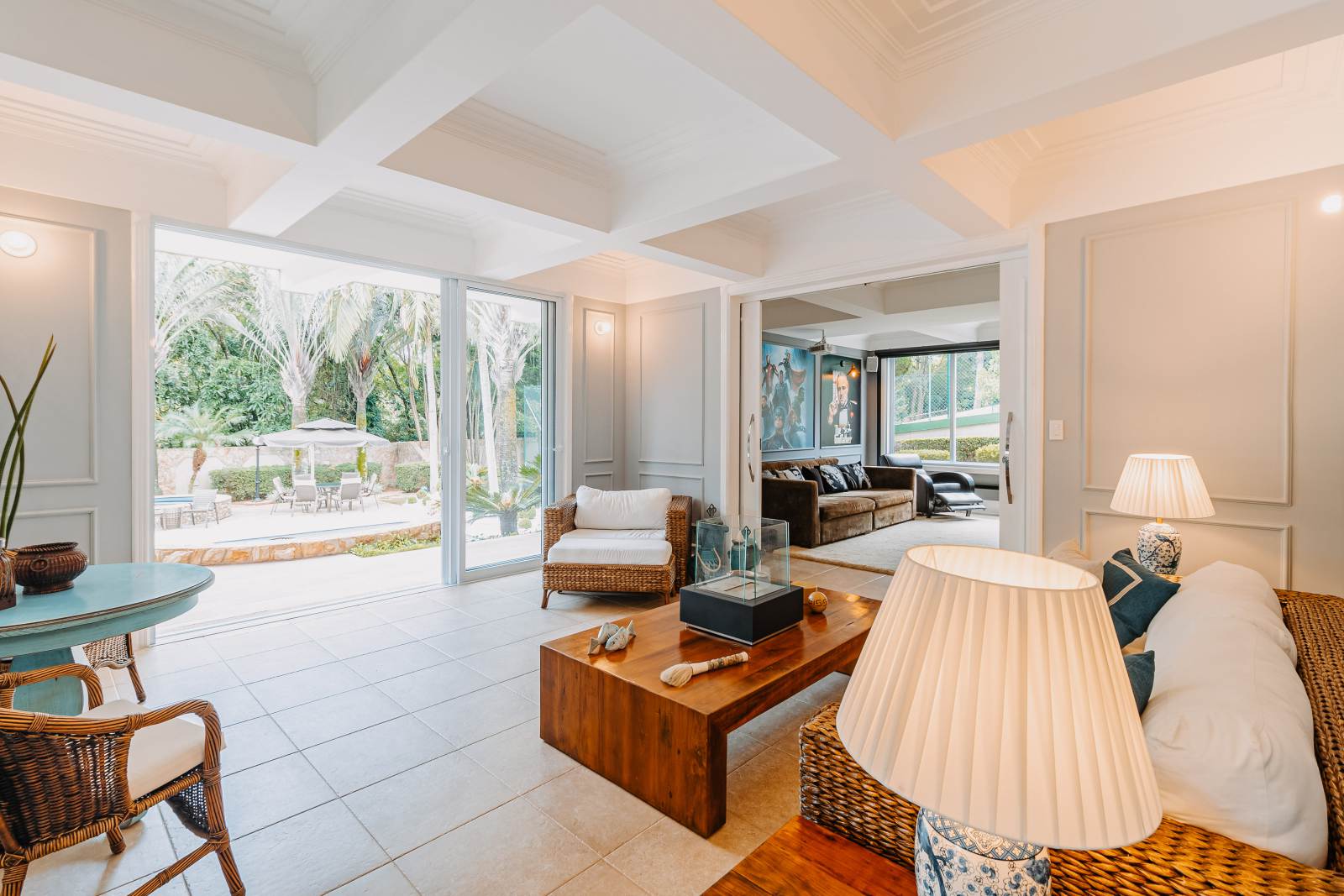 * Som ambiente automatizado em múltiplos ambientes (salas, escritório, cinema, piscina e espaço gourmet)