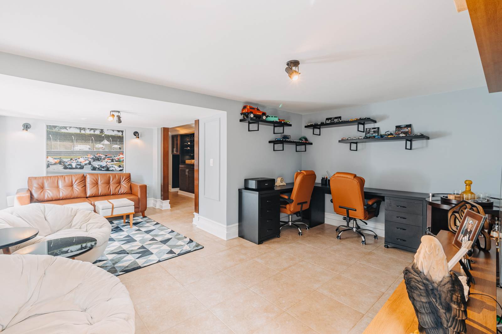 * Escritório com sala de estar integrada e sistema de som automatizado