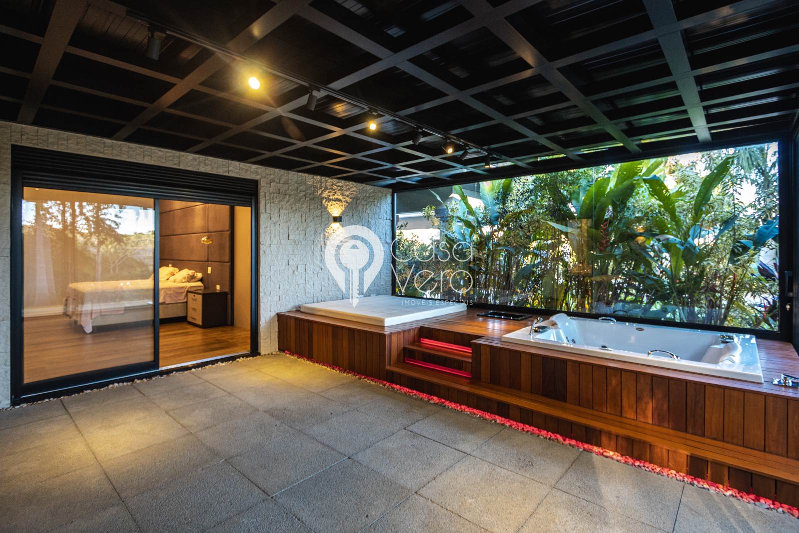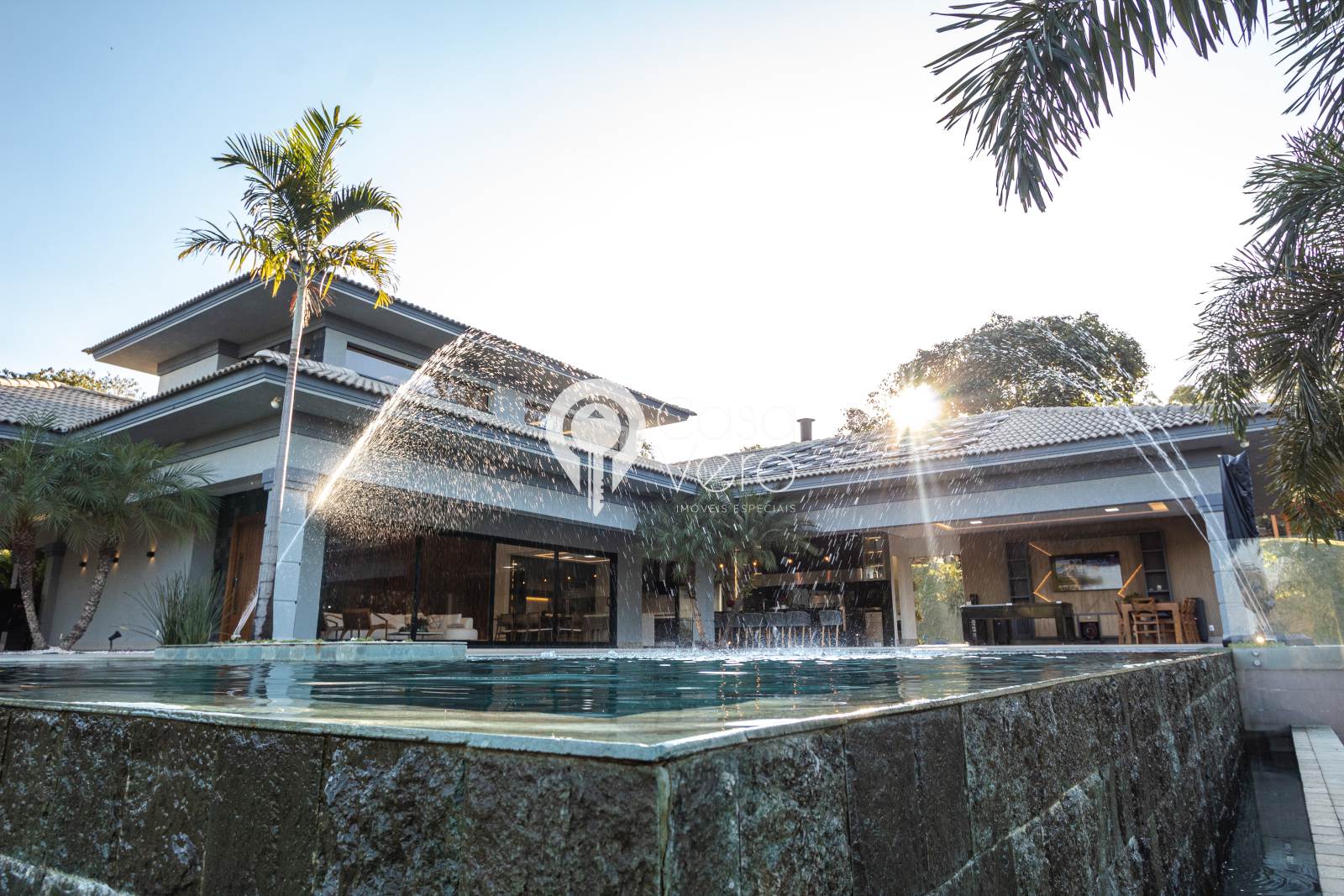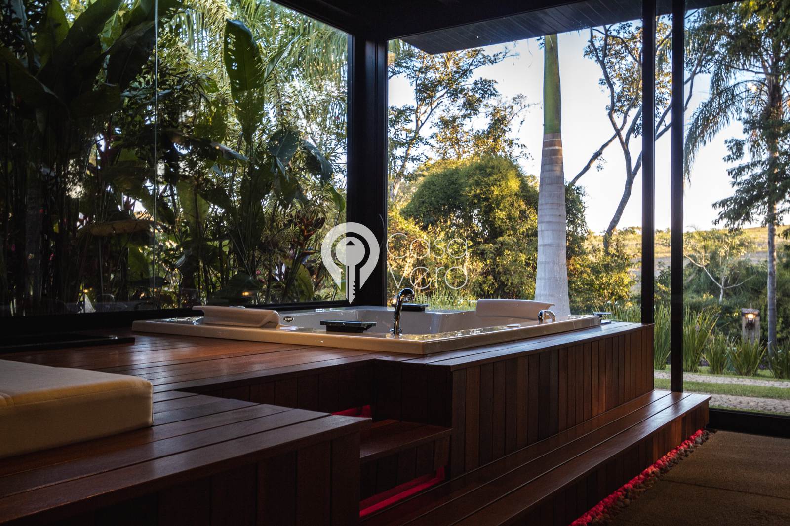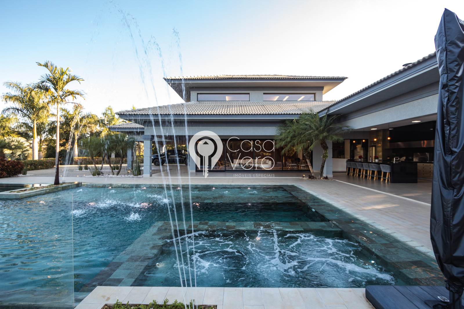 * 4 suítes com closets amplos (master com SPA, deck cumaru, hidromassagem Jacuzzi dupla, cubas e duchas duplas).
