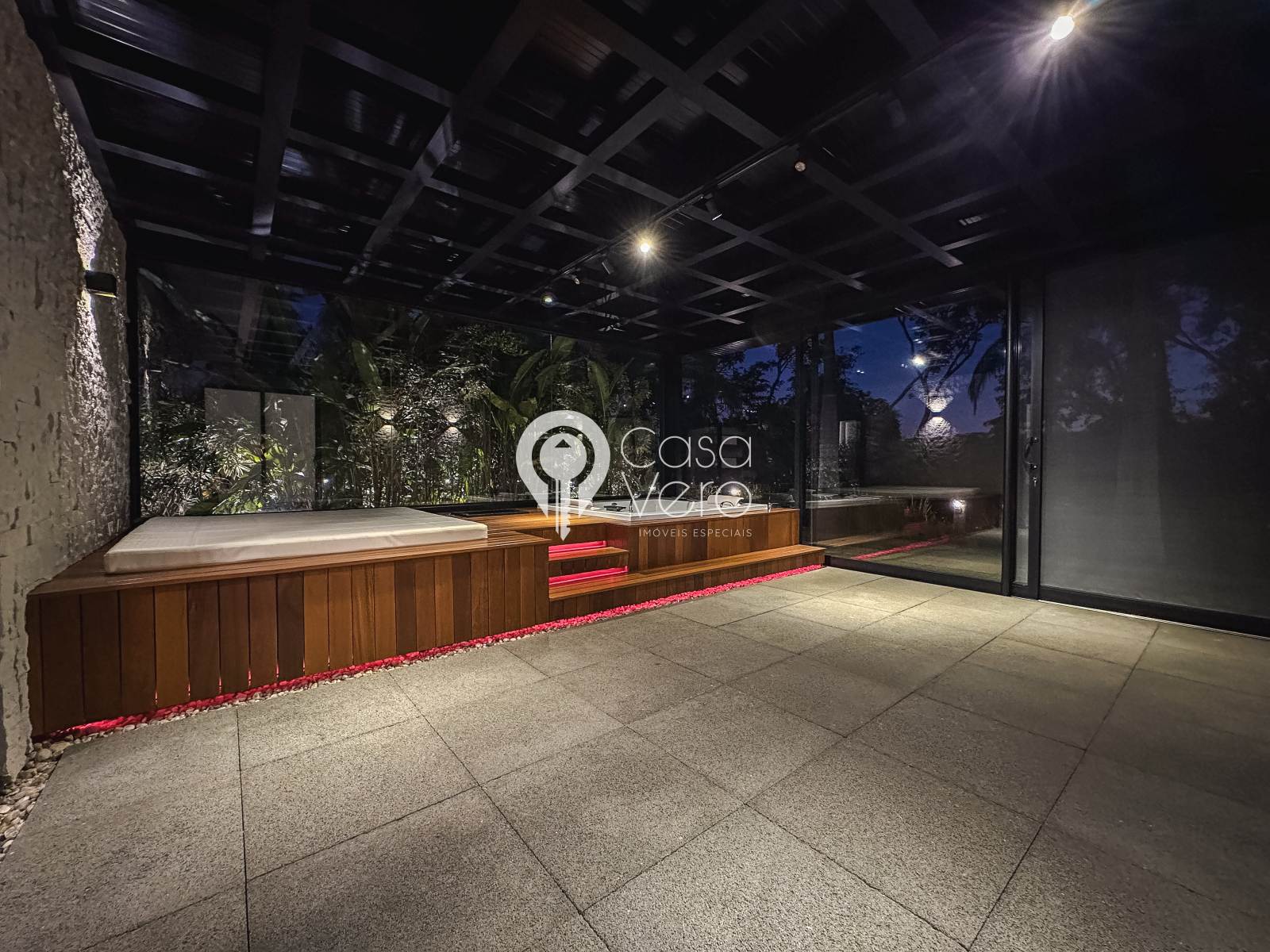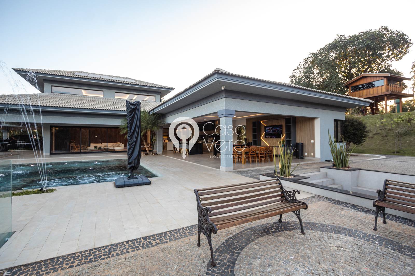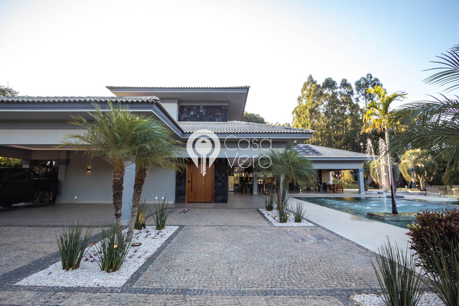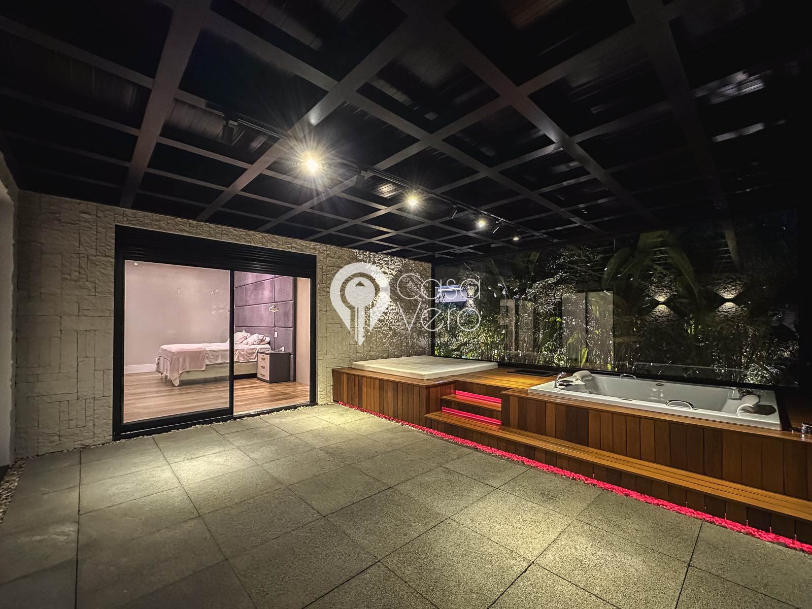 * 4 suítes com closets amplos (master com SPA, deck cumaru, hidromassagem Jacuzzi dupla, cubas e duchas duplas).