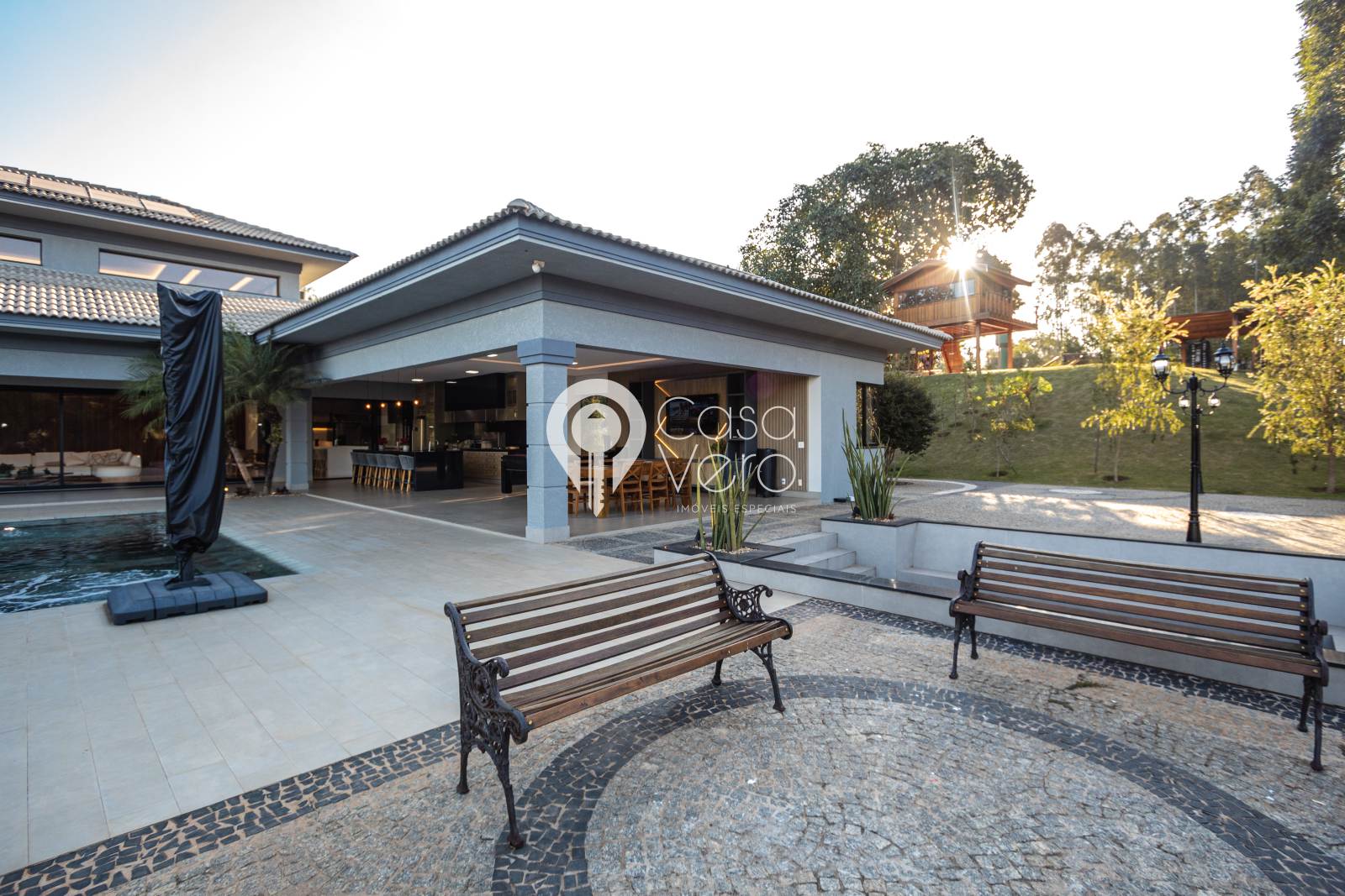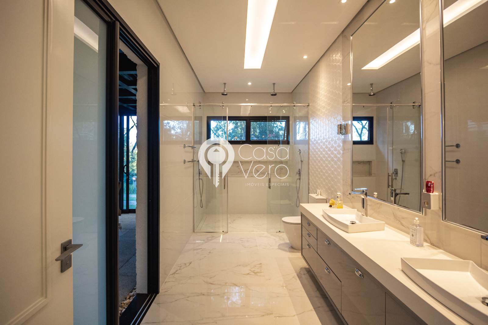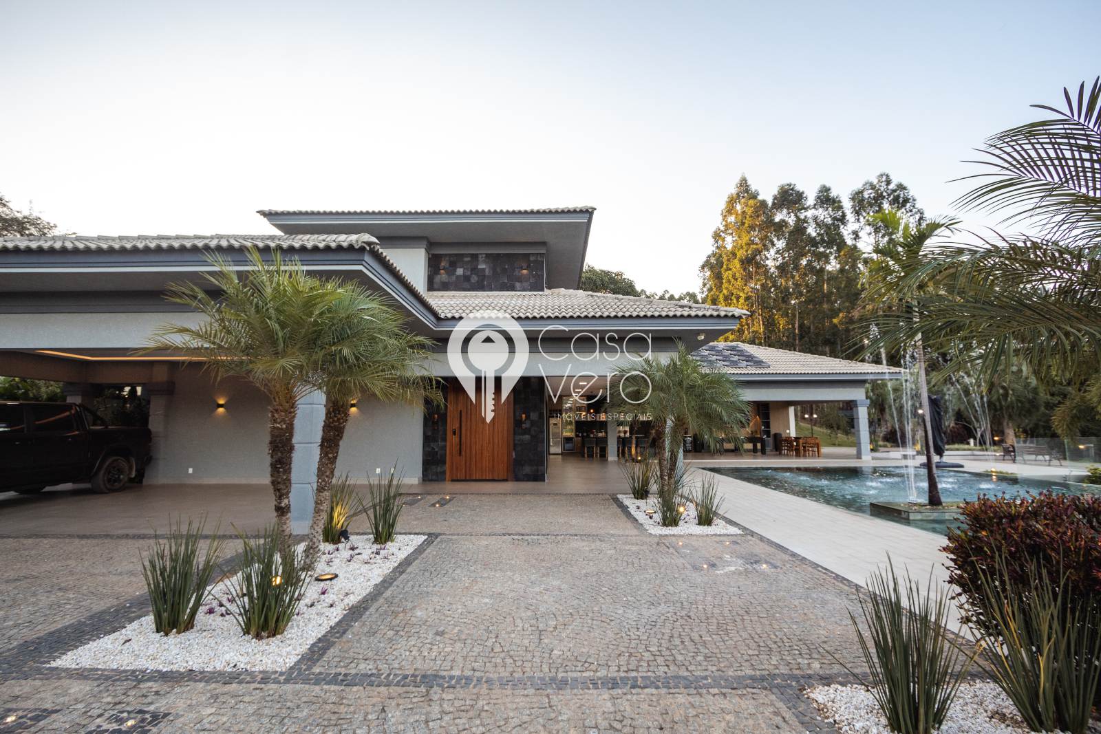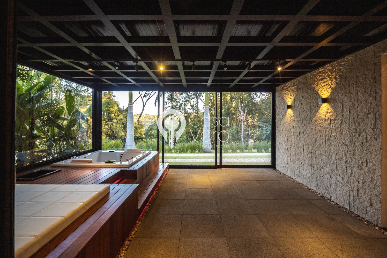 * 4 suítes com closets amplos (master com SPA, deck cumaru, hidromassagem Jacuzzi dupla, cubas e duchas duplas).