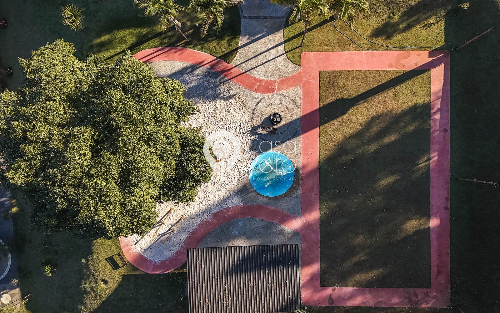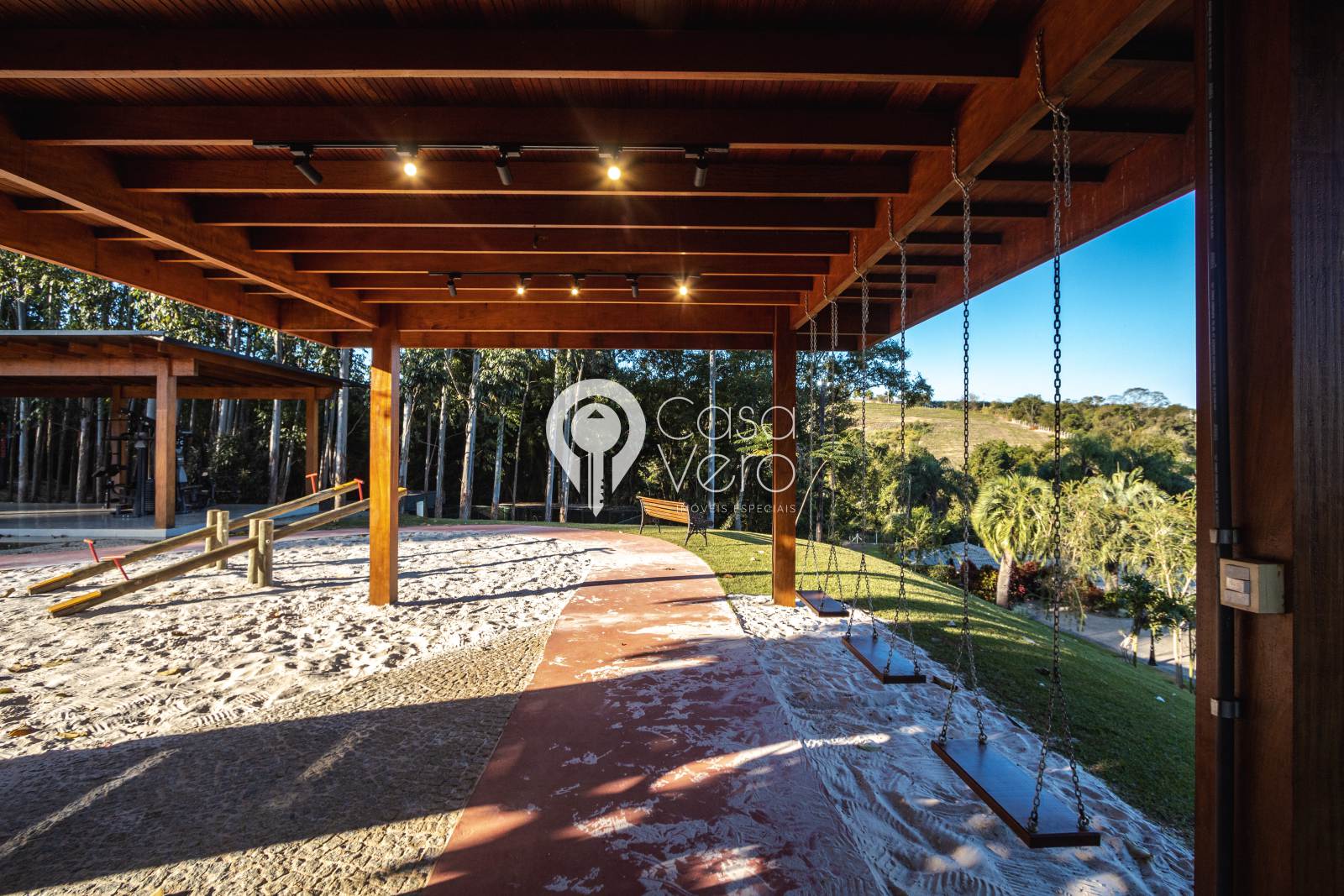 * Playground, campo gramado e ciclovia.