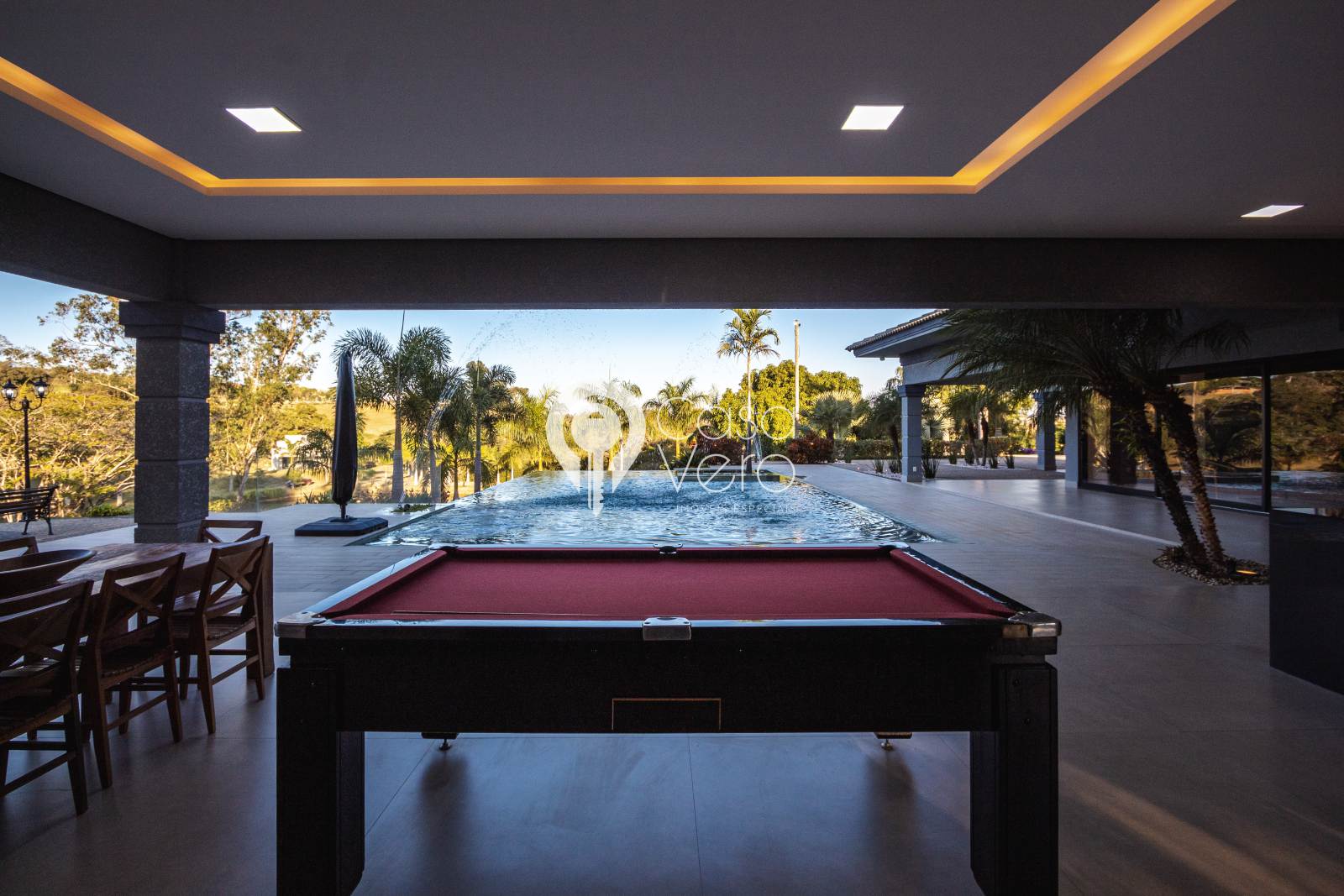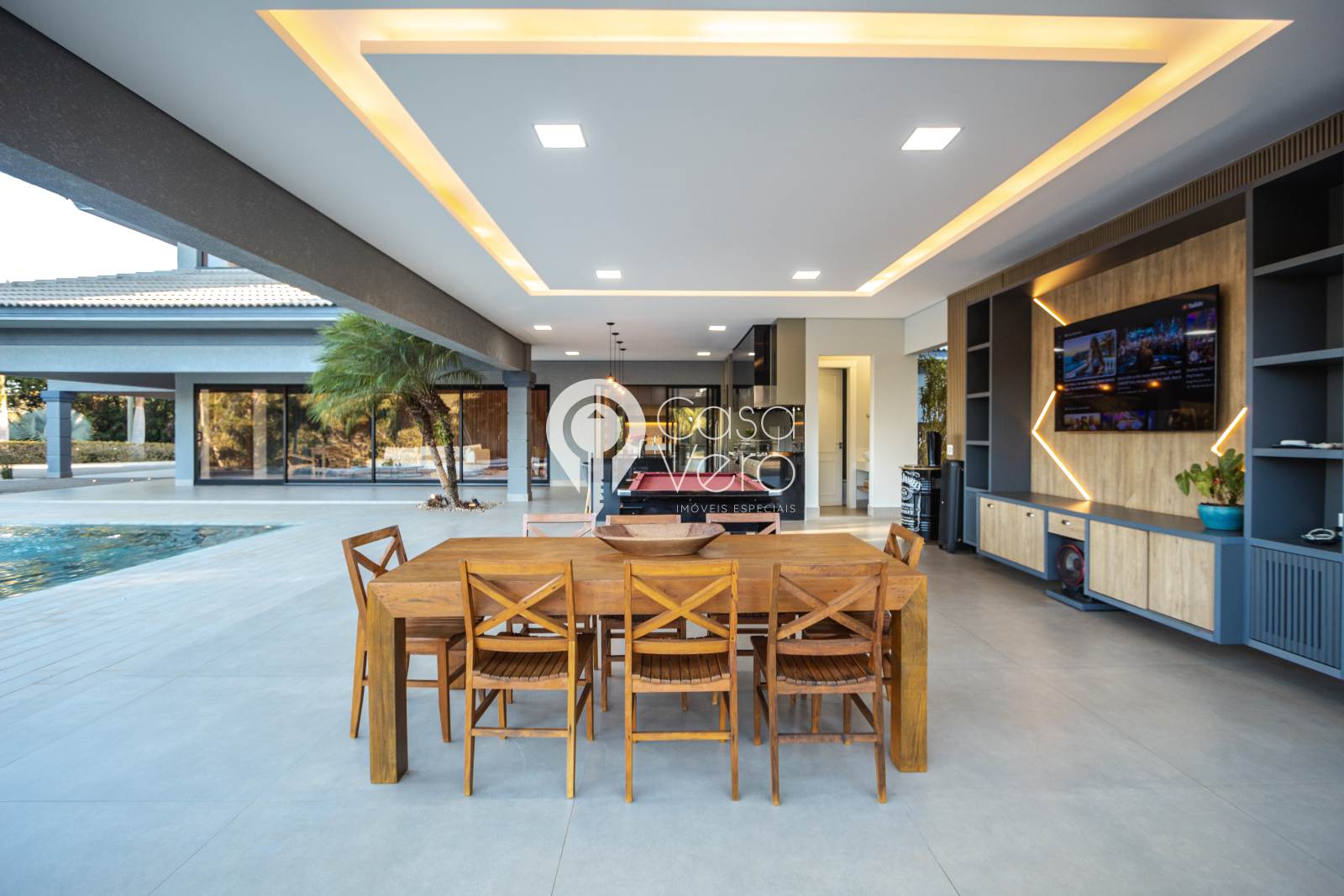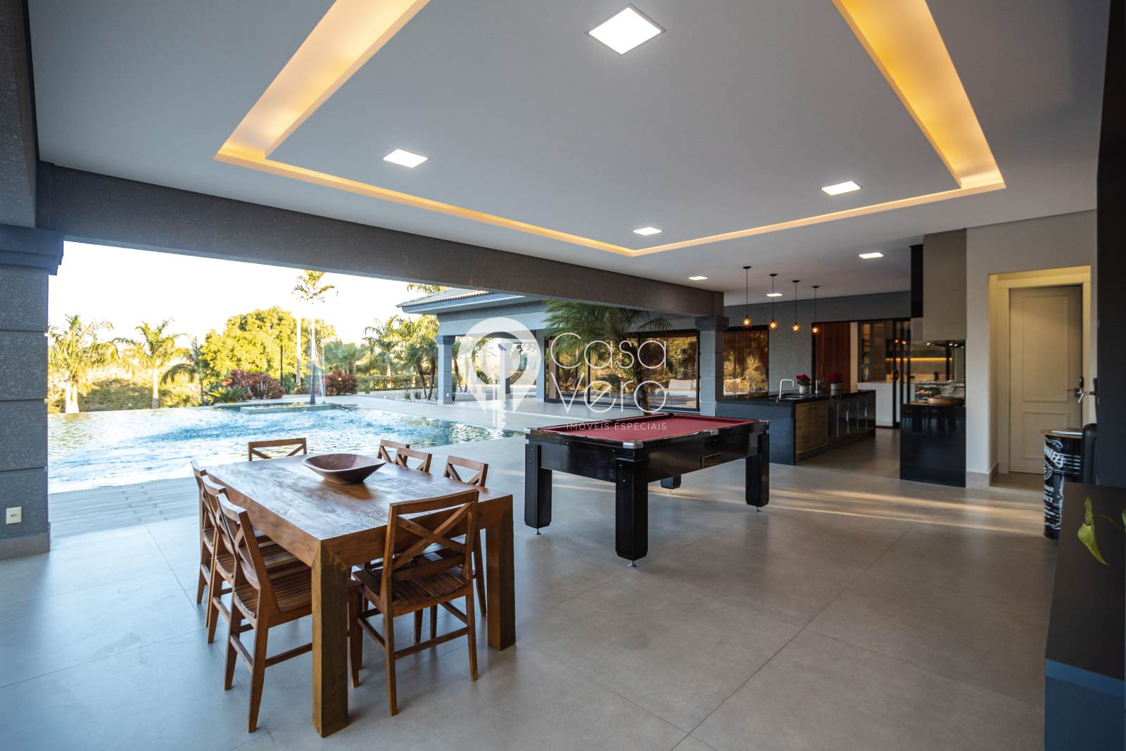 * Sala de jogos com sinuca, TV 75” e sistema de som.